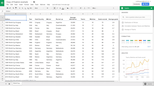 Las ventajas principales son que puede trabajar con las hojas de cálculo por su cuenta o con otras personas online desde cualquier lugar. Si necesita volver a alguna versión en particular, también es posible a través de su función. Aparte de esto, la app ofrece la posibilidad de crear informes y trabajar con formularios.